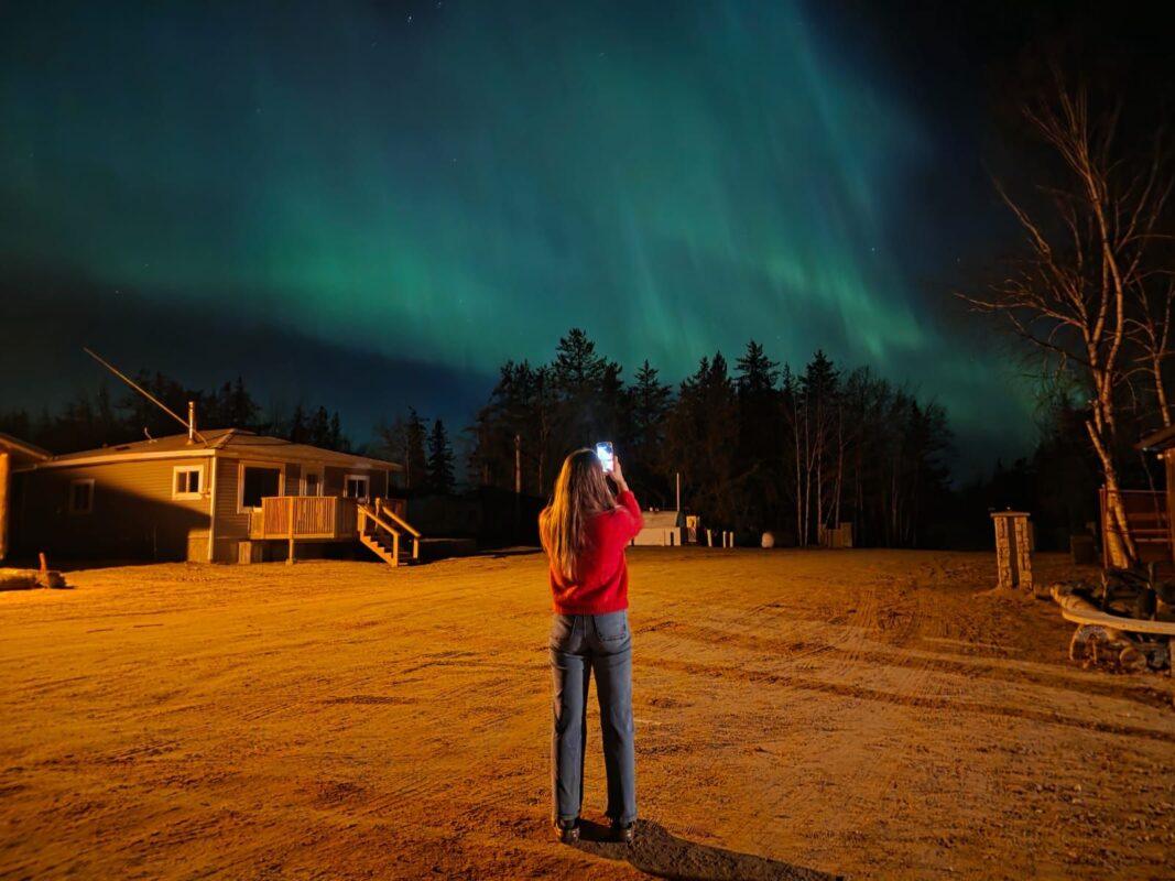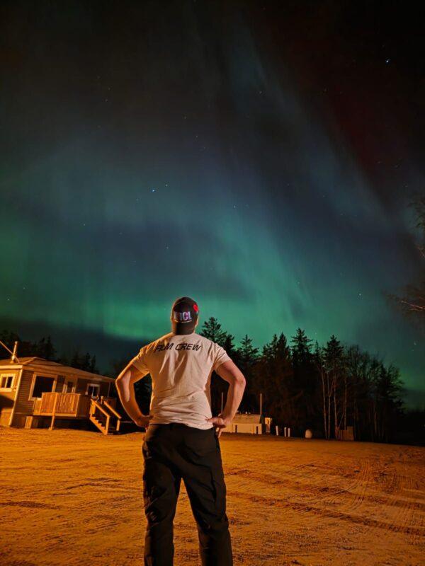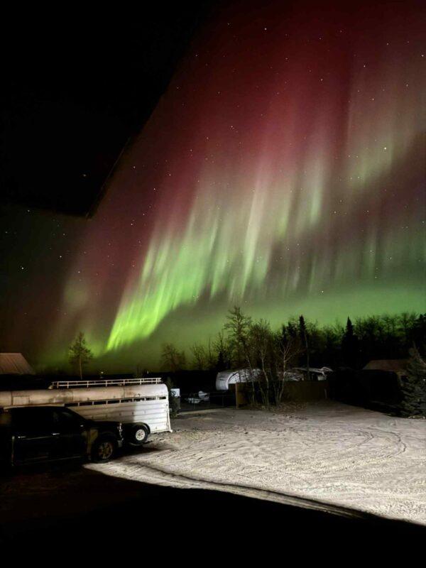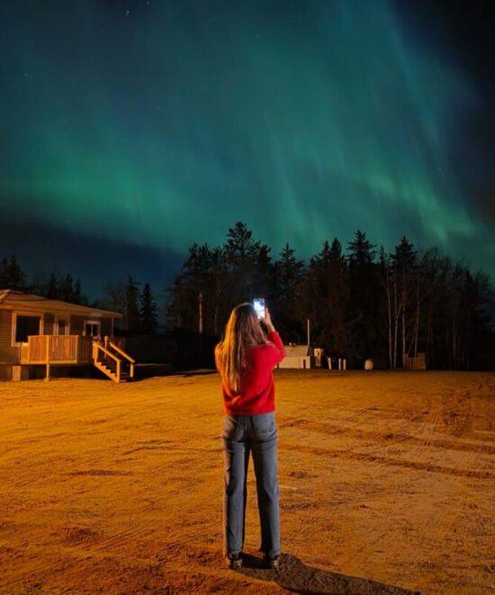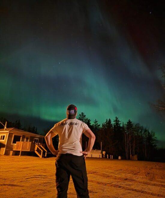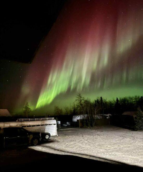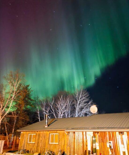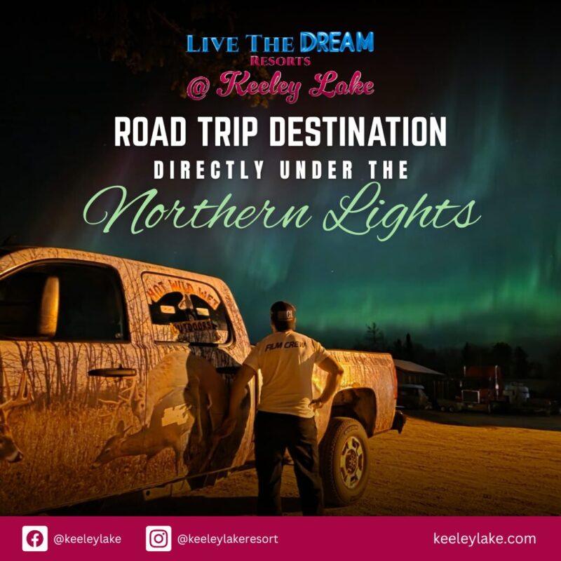 Experience the magic of the Northern Lights as they illuminate the skies above Keeley Lake.